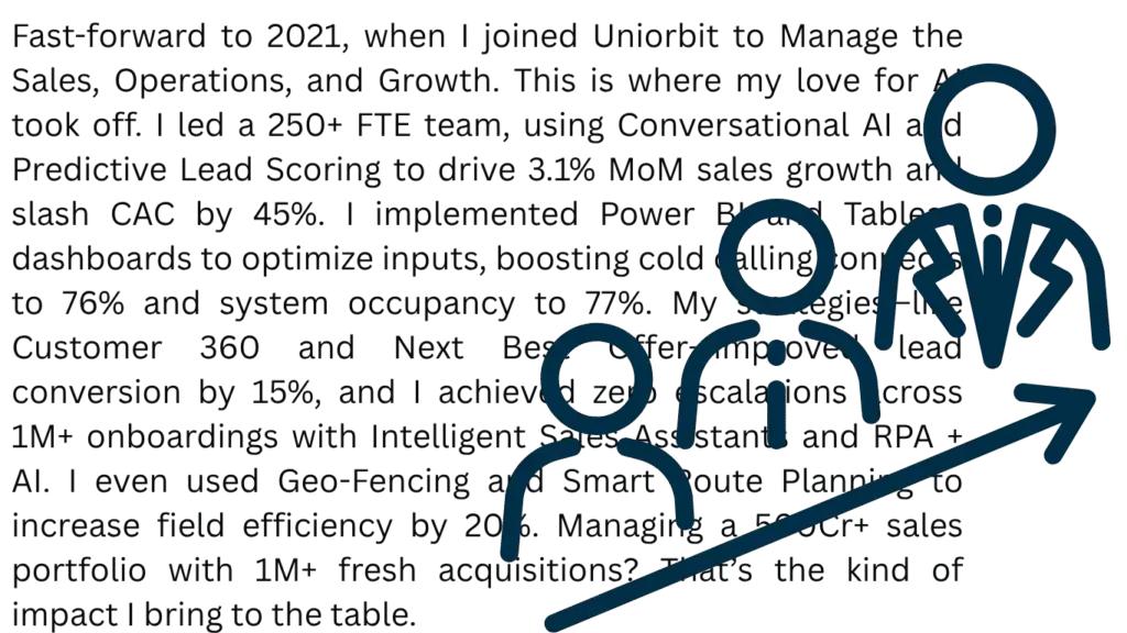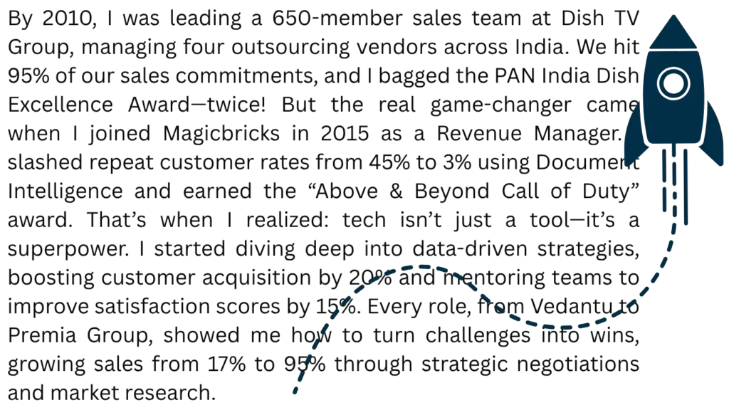 I don’t just lead teams—I build empires. Organizations rely on me to turn chaos into clarity, using AI to unlock growth that sticks. I’ve scaled operations for 850+ FTE, transformed customer experiences with tech, and delivered results that outpace industry benchmarks by 60%. My secret? A mix of grit, innovation, and a relentless drive to make things better. Whether it’s cutting costs, boosting conversions, or launching products with precision, I’m the guy who gets it done. My MBA journey at ISBR Bangalore keeps me sharp, blending academic rigor with real-world wins.